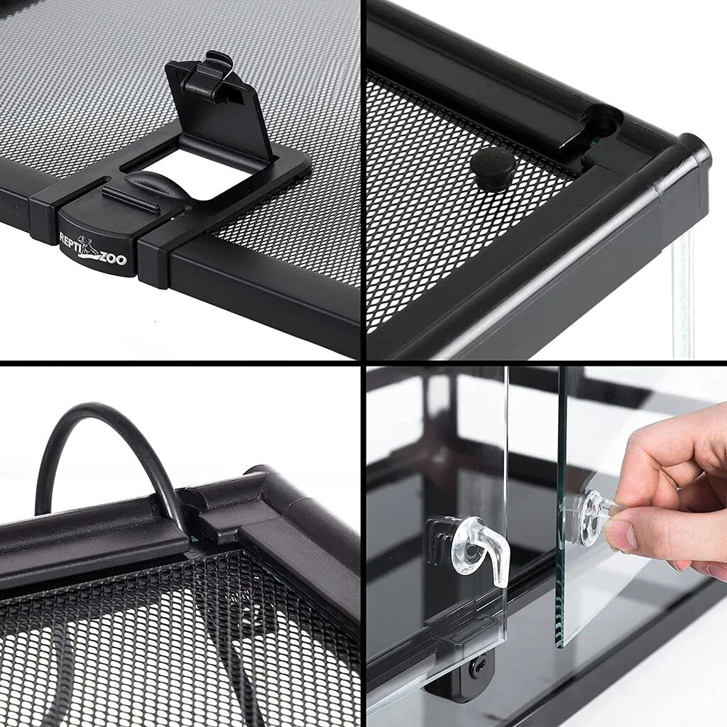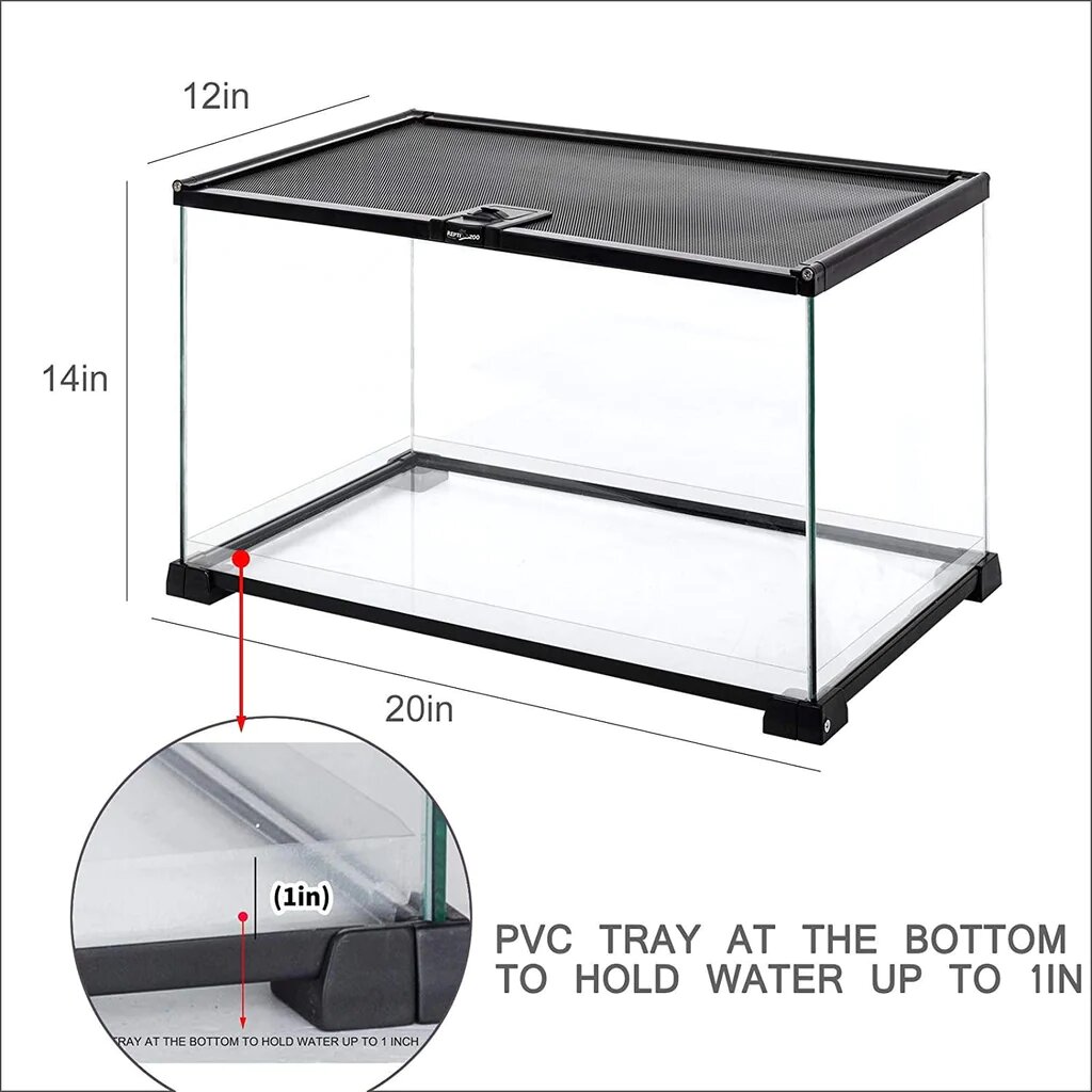- 【Full Glass Reptile Tank】Made of high quality thick glass for sturdy and safe. Patent design full view glass reptile tank is convenient for feeding and observing your reptile amphibian pets.
